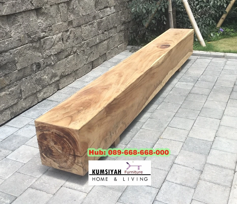 Bangku Balok Panjang ini terbuat dari bahan kayu balok utuh tanpa sambungan sehingga lebih kokoh, unik dan tahan lama. ukuran bangku di buat lebih panjang agar dapat digunakan untuk lebih dari dua orang atau juga bisa digunakan untuk tempat berbaring