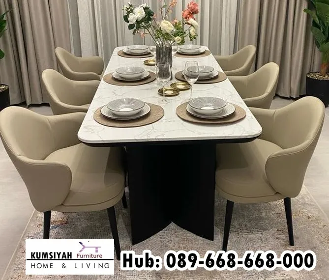 Selain dari segi estetika, marmer juga dikenal sebagai material yang kuat dan tahan lama. Permukaannya kokoh, tidak mudah tergores, serta tahan terhadap panas. Hal ini menjadikan meja makan marmer sangat cocok digunakan untuk aktivitas sehari-hari. Anda tidak perlu khawatir saat meletakkan makanan panas langsung di atas meja karena material ini mampu menahan suhu dengan baik.