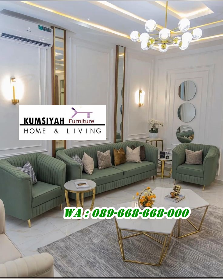 Kali ini kami akan menawarkan Sofa Ruang Tamu Stainless Kota Purworejo terbuat dari bahan stainless gold pada bagian kakinya dan untuk sandaran dan dudukan terbuat dari bahan busa empuk yang dilapisi kain bludru. Sofa tamu ini cocok dipadukan diberbagai interior ruangan sebab desainnya yang mewah dan modern. Pilih Sofa Ruang Tamu Stainless Kota Purworejo untuk melengkapi furnitur di ruang tamu agar terlihat elegan dan berkelas. Kain bludru memiliki beberapa kelebihan jika digunakan untuk dudukan dan sandaran sofa tamu, terutama terkait dengan kesan mewah dan kenyamanan. Kain bludru memiliki tekstur yang lembut dan berkilau, memberikan kesan mewah dan elegan pada sofa tamu. Hal ini membuatnya menjadi pilihan populer untuk menciptakan suasana yang lebih mewah di rumah. Kain bludru terasa lembut dan nyaman saat disentuh, sehingga memberikan rasa nyaman saat duduk atau bersandar pada sofa. Hal ini menjadikannya pilihan yang baik untuk menciptakan suasana yang nyaman dan rileks di ruang tamu. Kain bludru juga memiliki serat yang kuat dan tidak mudah terurai atau tergores. Hal ini membuatnya tahan lama dan dapat digunakan untuk jangka waktu yang panjang tanpa cepat rusak. Kain bludru adalah pilihan yang baik untuk dudukan dan sandaran sofa tamu karena memberikan tampilan mewah, kenyamanan tinggi, daya tahan, serta variasi warna dan desain yang beragam. Kaki sofa tamu yang terbuat dari stainless berwarna emas (gold) memiliki beberapa kelebihan, terutama dalam hal kekuatan, tampilan, dan perawatan. Stainless sendiri dikenal karena ketahanan terhadap korosi, karat, dan oksidasi, menjadikannya pilihan yang sangat awet dan tahan lama. Warna emas memberikan sentuhan mewah dan modern pada ruang tamu, membuat sofa terlihat lebih elegan.